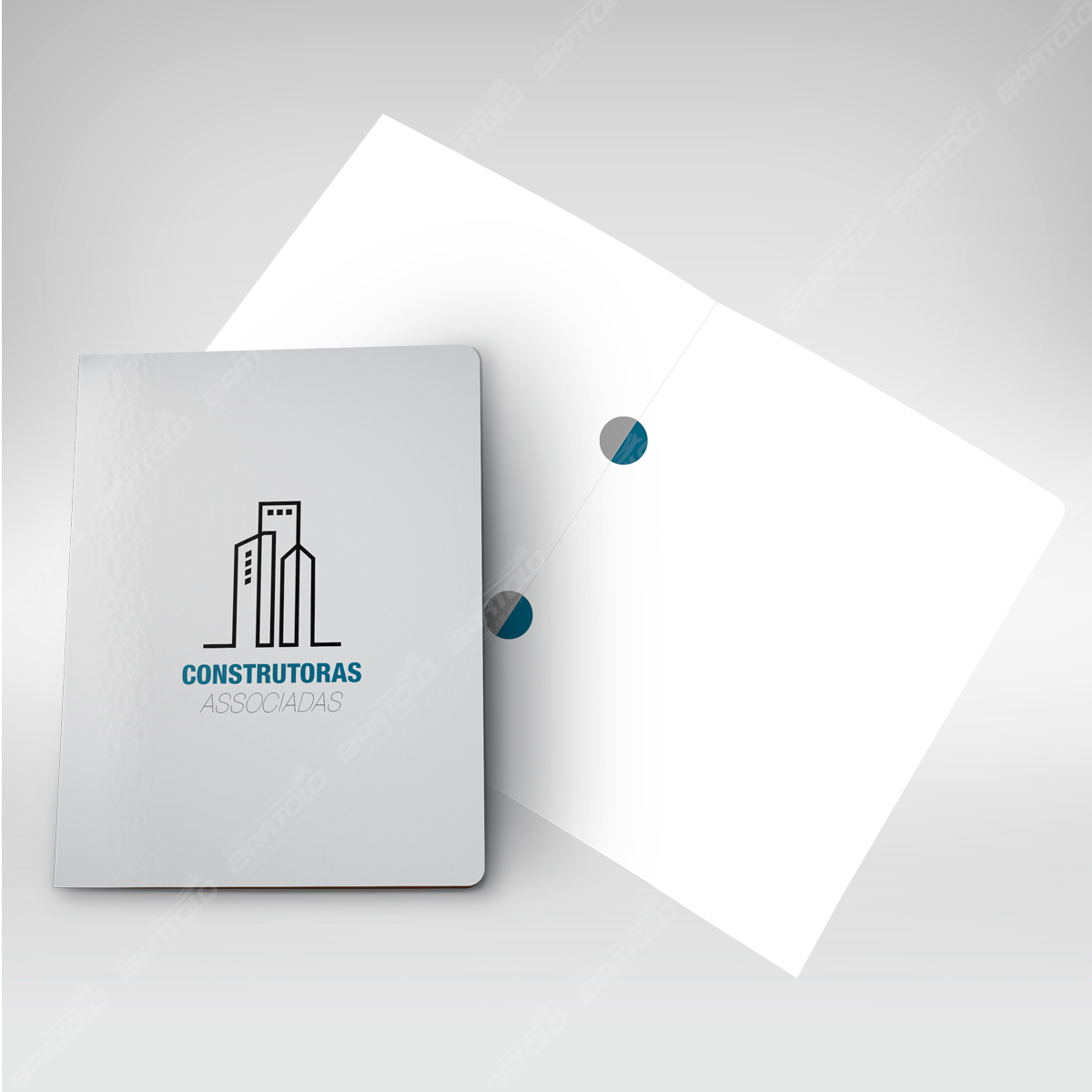 • Pasta com orelhas para arquivamento de propostas ou contratos.